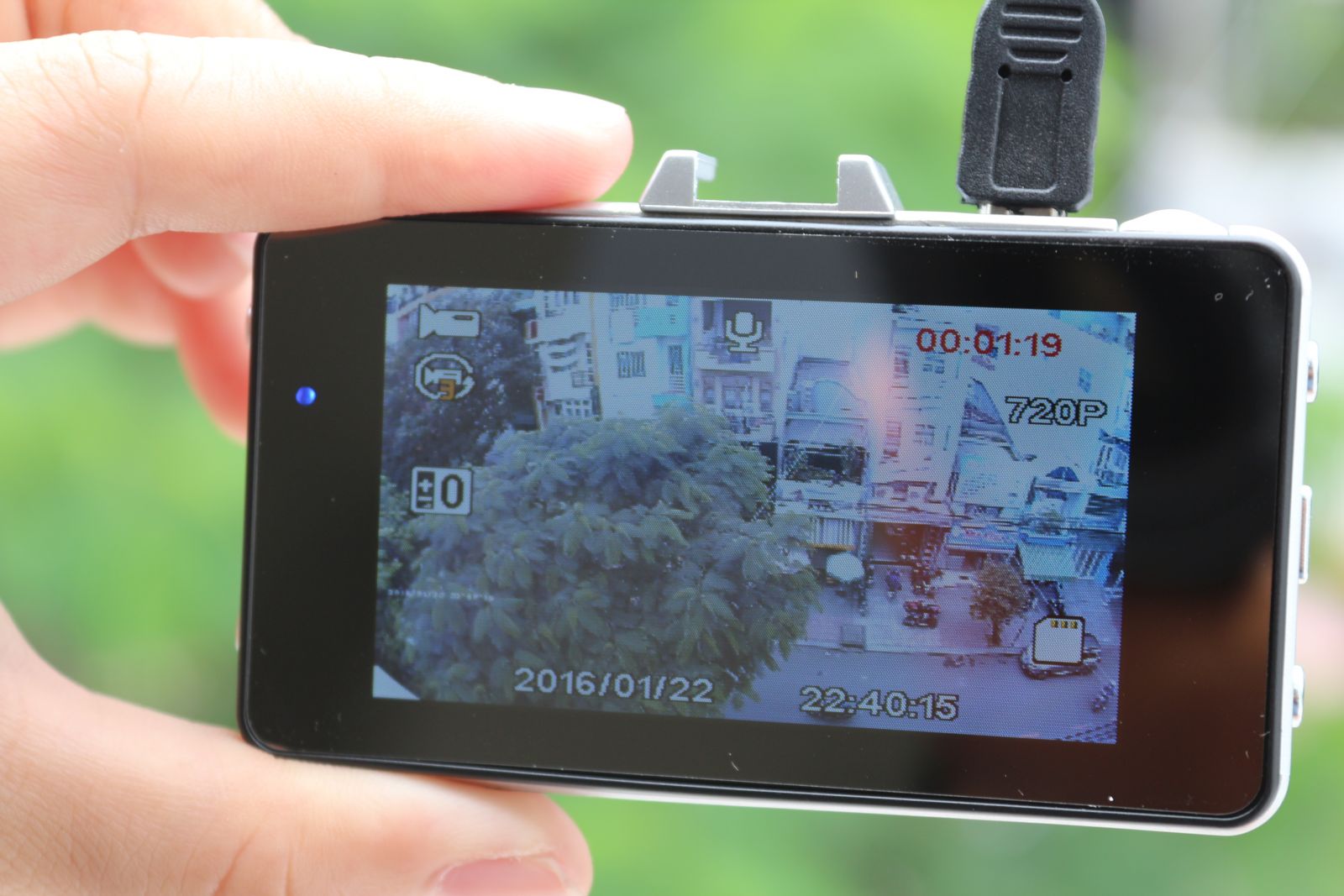 Hình ảnh sắc nét. Hiển thị thời gian hoạt động màu đỏ bên góc phải. |